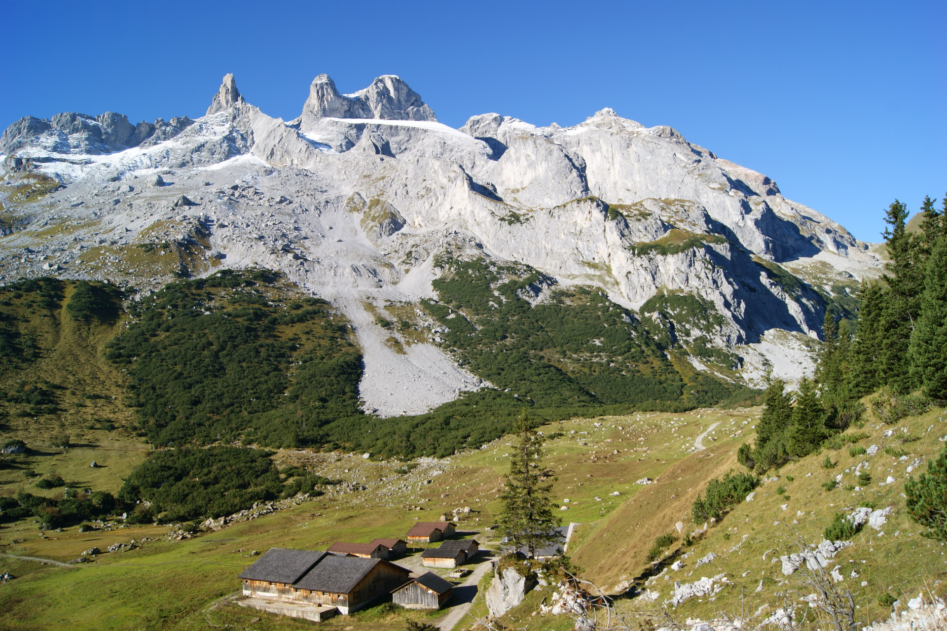 Mit der Golmerbahn bewältigst Du schon die ersten Höhenmeter von Latschau zur Bergstation Grüneck auf 1.890 Metern Seehöhe. Im Berghof Golm kannst Du die erste Pause einlegen. Von dort geht es kurz bergauf. An der Weggabelung folgst Du dem Weg zur Latschätzalpe. Die Wanderung, führt zunächst leicht auf und ab. Die Dauer beträgt ca. 1 Stunde. An der Latschätzalpe hast Du die Möglichkeit eine weitere Rast zu machen. Hier wird neben Butter und Bergkäse der traditionelle Montafoner "Sura Kees" hergestellt. In diesem Gebiet kannst Du Murmeltiere beobachten. Ab der Sennalpe wanderst Du kurz ansteigend über bunte Bergwiesen und leichte Waldstücke an den östlichen Abhängen der Geißspitze entlang. Nach leichtem Auf und Ab mit Blick auf die Tschaggunser Mittagsspitze und Schwarzhorn folgt schließlich der Abstieg zur Lindauer Hütte am Fuße der Drei Türme. Bei der Lindauer Hütte kann man außer rasten und genießen auch den auf 3.000 m² angelegten einizigen botanischen Alpengarten Vorarlbergs anschauen. Die Öffnungszeiten sind von Anfang Juni bis Ende August (je nach Wetterverhältnissen). Der Eintritt ist frei. Gestärkt trittst Du den Rückweg an. Der Rückweg beginnt mit dem Abstieg durch den Porzalengawald zur Unteren Sporaalpe und zur Unteren Latschätzalpe. An der Weggabelung wählst Du den linken Weg bergwärts. In Serpentinen durch den Ronawald gelangst Du in ca. 1,5 Std. zu den Maisäßsiedlungen "Wachters Dieja" und "Plazadels". Von Plazadels (ca. 40 Min.) führt der Weg leicht bergab durch leichte Waldstücke zur Maisäßlandschaft Matschwitz und kurz danach erreichst Du die Mittelstation der Golmerbahn. Von hier geht es mit der Golmerbahn zurück nach Latschau.