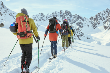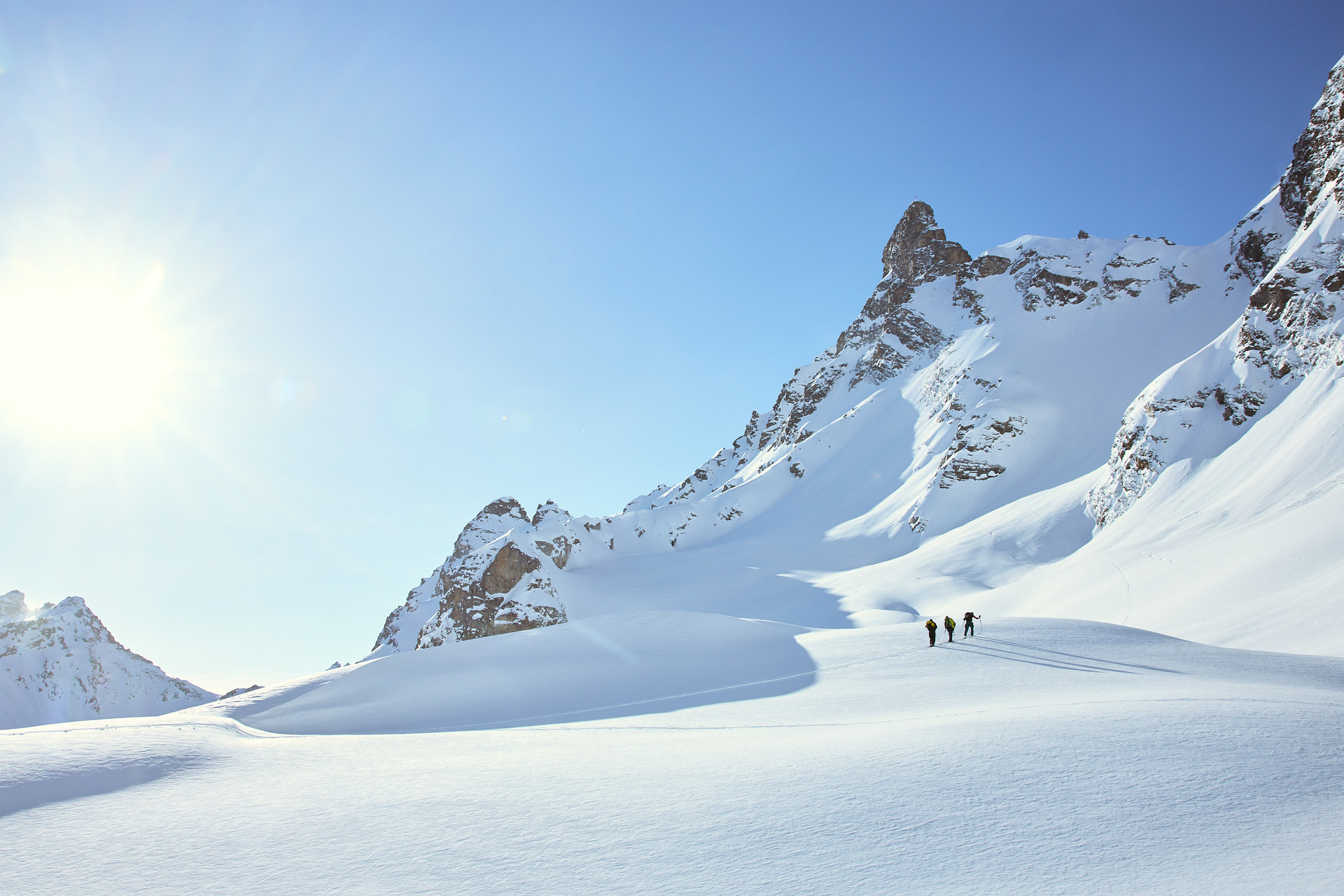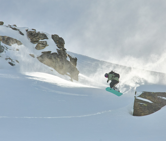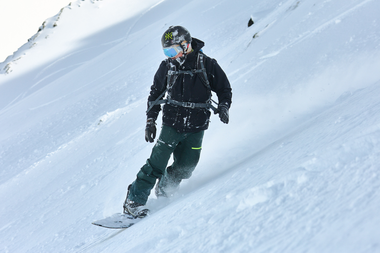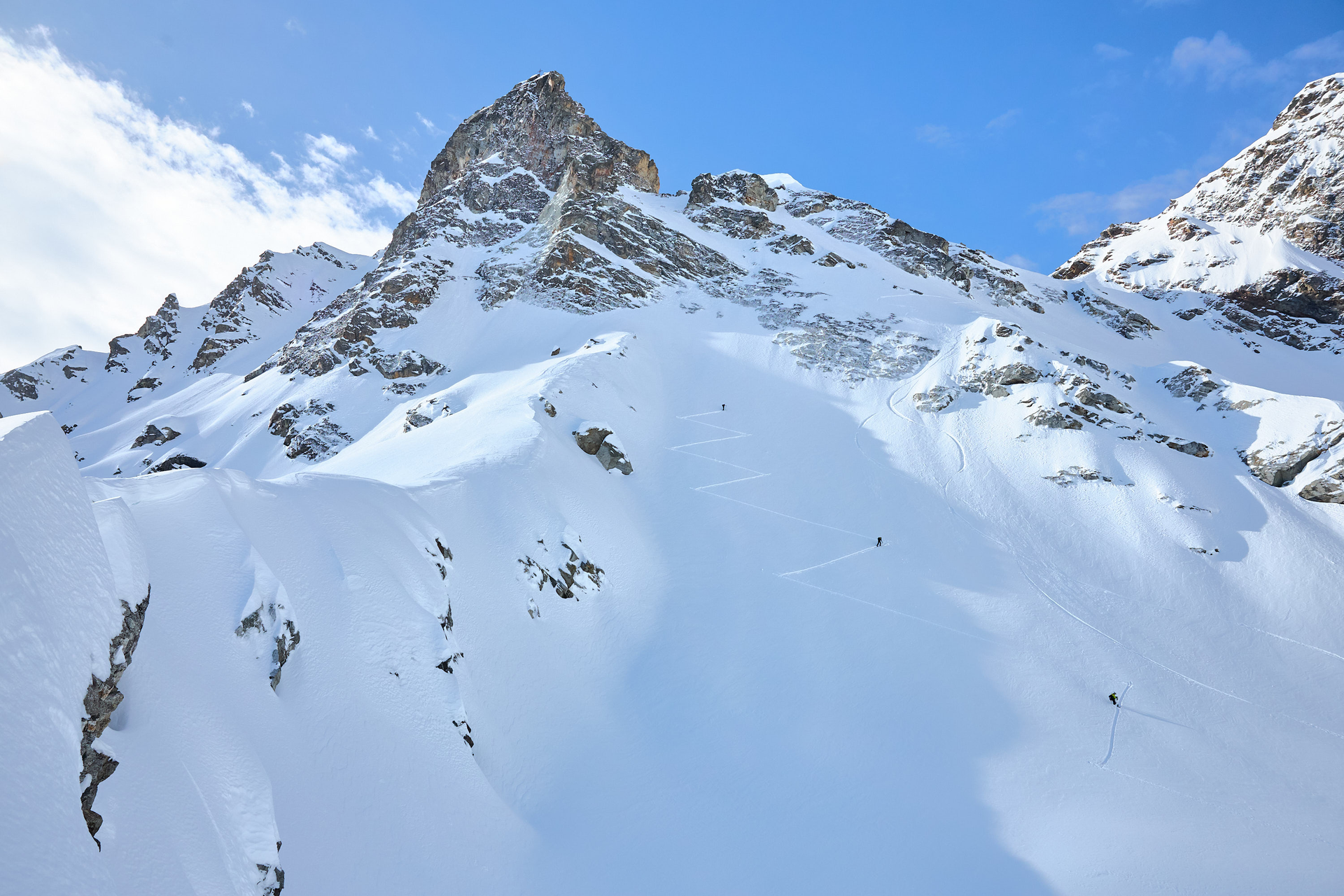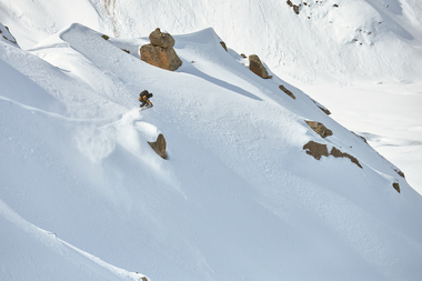 Da Samstag eine Kaltfront durchs Land rauschen sollte, wurde der Contest auf Freitag vorverlegt. Nach ca. einer Stunde Aufstieg konnten die Riderinnen und Rider ihr „Hüttengepäck" vom Freeridegepäck trennen und die Rucksäcke wurden sogleich um einiges leichter. Das Gepäck transportierten die Helferinnen und Helfer des Back on Track zur Hütte und die Karawane zweigte in Richtung Lobturm ab. Nach einem kurzem Hike stand man dann unter dem bereits von den Bergführerinnen und Bergführern geprüften Contestface. Zwei verschiedene Startplätze, viele Rinnen und Felsen ließen den Riderinnen und Ridern alle Möglichkeiten offen. Ohne Stress konnte sich jede und jeder seine Line raussuchen und dann die letzten 300 Höhenmeter zum Start in Angriff nehmen.