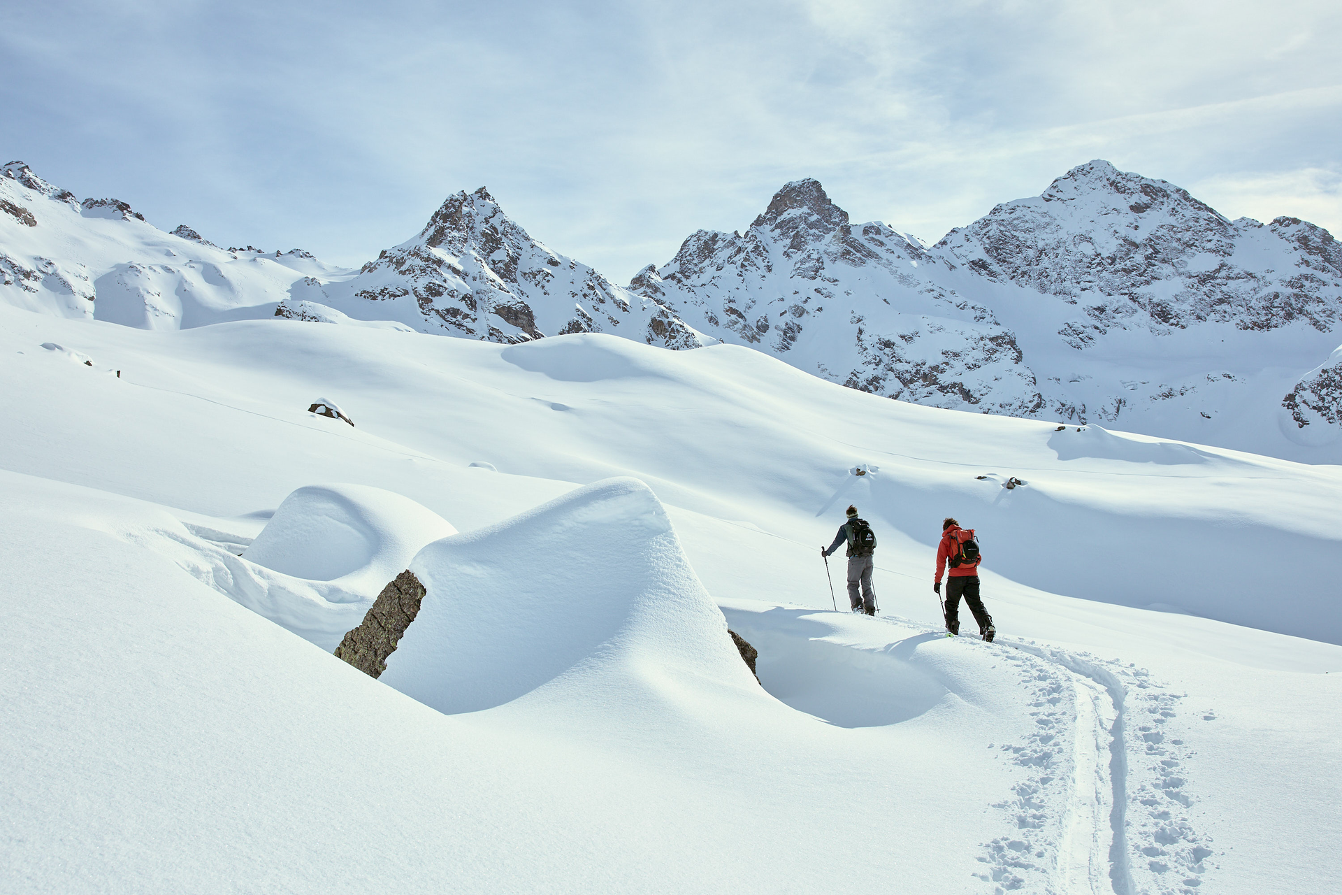Der Schneefall ließ die ganze Nacht kaum nach und am Sonntagmorgen blieb den Hüttengästen nur noch die Abfahrt durch 60 Zentimeter Neuschnee, da Wolken und null Sicht keine weiteren Touren zuließen. Damit waren die meisten aber mehr als zufrieden. Kurz zusammengefasst: Es war wieder ein perfektes Wochenende in den Alpen. Wer Tourengehen mag, gerne Tiefschnee fährt und das mit ein paar Gleichgesinnten machen will, sollte hoffen, dass es auch 2025 einen Back on Track gibt.