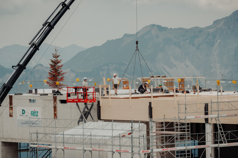 Auch im Außenbereich tut sich einiges: Der Aushub für die Pistenbullygarage ist abgeschlossen, und die Baumeisterarbeiten sind in vollem Gange. Gleichzeitig neigt sich der Abbruch der alten Strukturen dem Ende zu. Parallel dazu werden bereits die Brunnenfundamente für die zukünftige Terrasse errichtet.