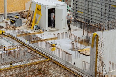 Auch im zweiten Bauteil geht es zügig voran. In Kalenderwoche 31 wurde die zweite Hälfte der Bodenplatte betoniert. Die Hälfte der Wände im Erdgeschoss stehen bereits – ein sichtbares Zeichen für den schnellen Baufortschritt.