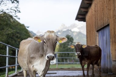 „Die Qualität der Lebensmittel ist nicht nur eine Frage der perfekten Verarbeitung. Echte Qualität beginnt schon viel früher, bei der Aufzucht der Tiere, an die wir höchste Ansprüche stellen. Auf unserem Hof leben Kühe, Schweine und Pferde. Unser Jungvieh bringen wir zur Sommerfrische auf die Alpe Tilisuna in Tschagguns. Unsere Kälber und Schweine leben glücklich mit viel Platz zum Spielen und Erkunden im Stroh und alle bekommen selbstverständlich schmackhaftes und gesundes Futter. Bei uns gilt: Faire Lebensmittel zu einem fairen Preis“, erklärt uns der 32-jährige seine Philosophie.
