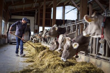 Ein solcher Bauernhof, der im Haupterwerb geführt wird, ist jener der Familie Schrottenbaum in Schruns unterhalb des Klosters Gauenstein. Großes Augenmerk wird dabei auf die Qualität der Produkte gelegt, erklärt uns Bernhard, der gemeinsam mit seinem Bruder Manuel den Hof mit Unterstützung der ganzen Familie führt.