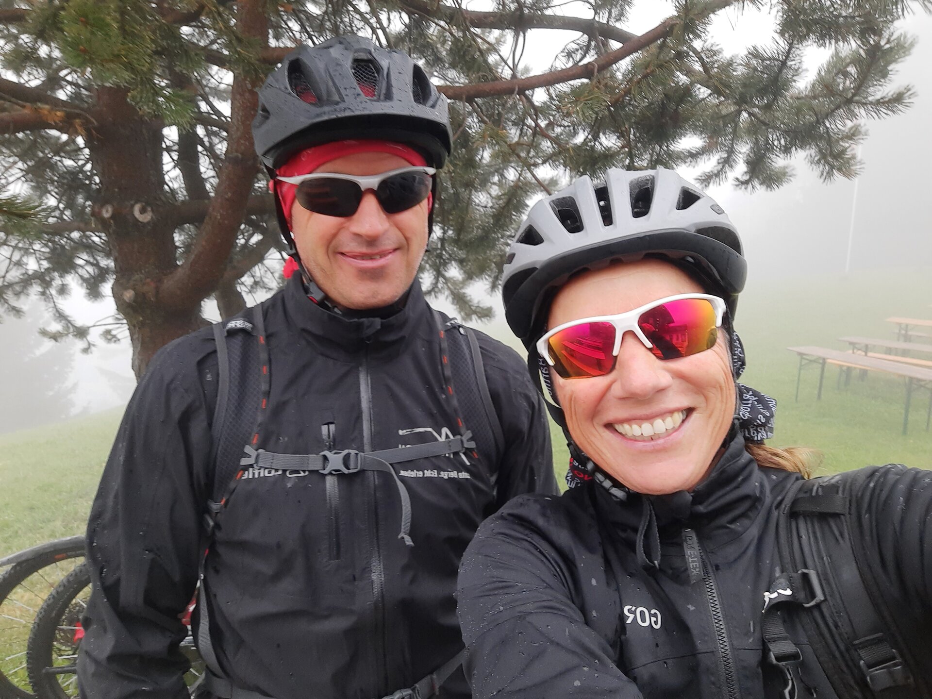 Wir drehen um. Problemzonen fallen nun mal ins Gewicht, und das sind nasse Füße im triefenden Schuh. Bei leichtem Regen mit Aussicht auf trockene Momente lassen sich Biketouren machen. Bei andauerndem Platzregen sieht es einfach anders aus. Schnell ist ein Plan geschmiedet: Am Sonntag soll die Sonne wieder scheinen. Michael hat für diesen Tag noch Kapazitäten … wie wäre es…