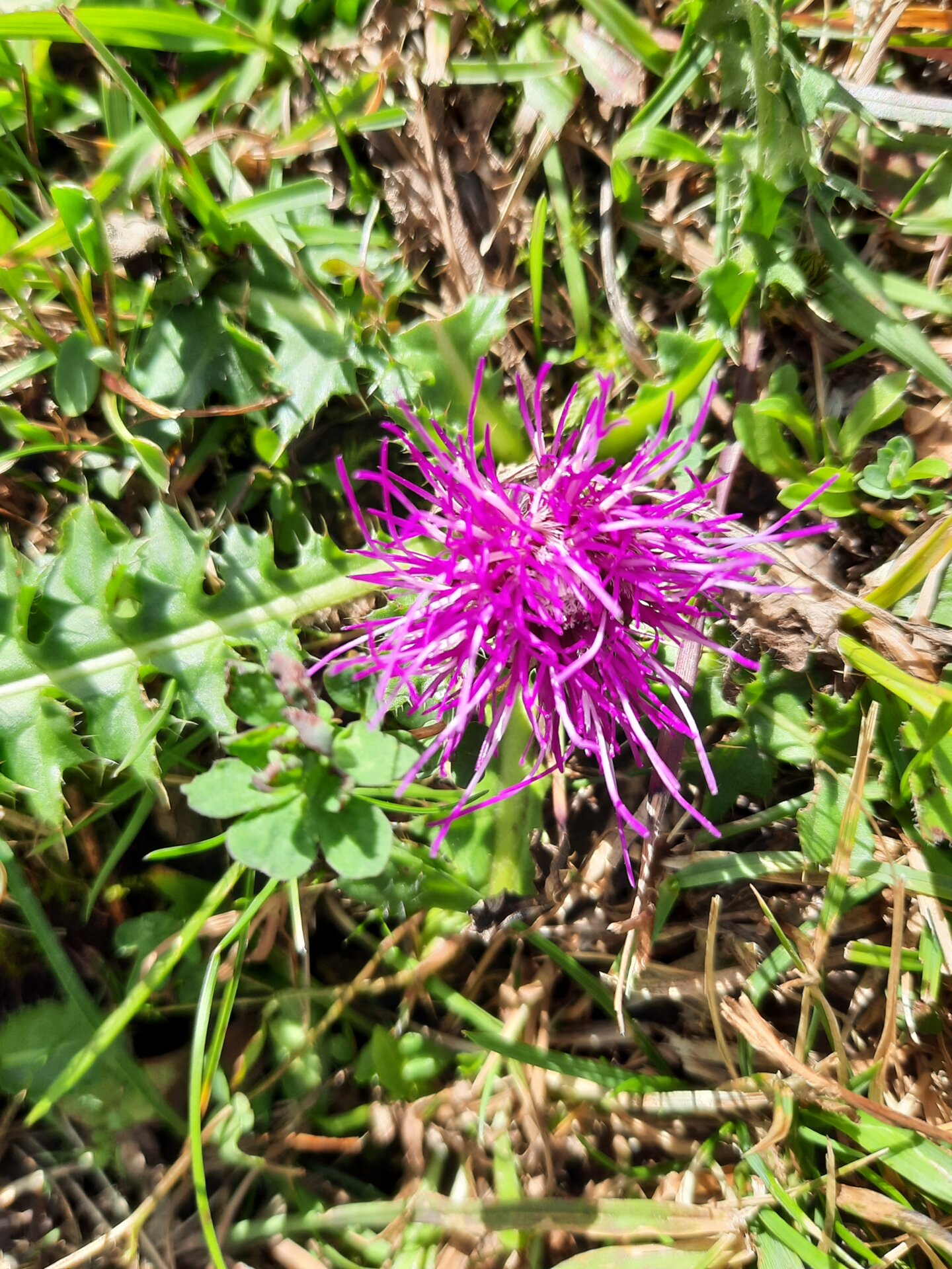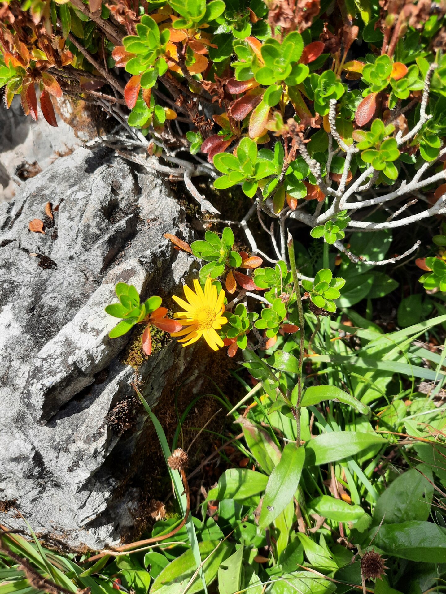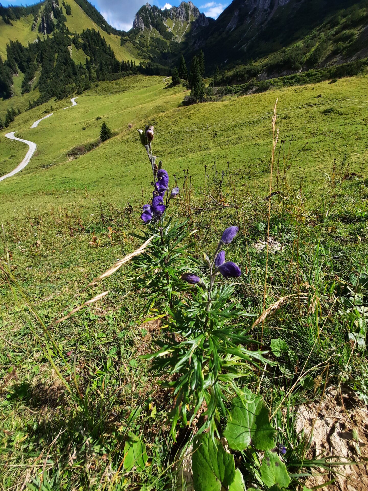 Beim Weg retour nehmen wir die vielen Blumen erst richtig wahr. Blaue Alpenglockenblume, Eisenhut, Silberdistel und gelbes Bergjohanniskraut. Ein Polster mit weißen strahlenförmig-dünnen Blüten fällt besonders in unser Blickfeld. „Das ist der gemeine Sternenstaub“, vernehme ich da von der Seite. Ich drehe mich langsam zu meinem Guide um und sehe seine nach oben gezogenen Mundwinkeln. Okay, wir beide müssen nochmal die Schulbank drücken. Der virtuelle Lehrer für die Hosentasche hat aber schon mal eine Lösung parat: Es könnte sich um die Alpen-Küchenschelle handeln.