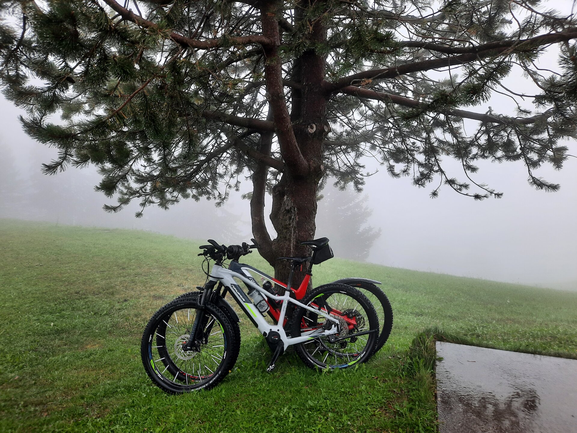 Schönes Wetter kann jeder. Die mystische Stimmung im leichten Nass nach drei Monaten Trockenperiode hat hingegen ihren ganz eigenen Reiz. Aufsteigende Nebelschwaden, Wolkendecken und Nieselregen, der einem gar nichts ausmacht, wenn man den Turbo-Knopf bedient ;). Ein E-Mountainbike macht jede Strecke zum Genuss, selbst bei unbeständigem Wetter, denke ich.
