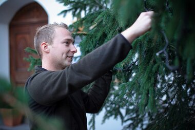 Besonders die Weihnachtszeit bringt dem Team des Bauhofs eine Reihe an Aufgaben mit. „Wir bestücken die Kirchen und Dorfzentren sowie die Schulen und Kindergärten mit Weihnachtsbäumen, die wir selbst fällen und schmücken. Oft macht es die Schneelage schwierig die Bäume abzutransportieren. Zudem schmücken wir die Dorfzentren weihnachtlich, unterstützen bei den Krippenausstellungen und bauen die Marktstände bei den Weihnachtsmärkten auf und ab. Am nächsten Tag räumen wir wieder auf und führen den Müll weg“, beschreibt Christoph die Aufgaben des Bauhofs. 2 Mann sind ungefähr 4 Tage mit der Weihnachtsdekoration beschäftigt. „Wir genießen aber selbst die Stimmung auf den Weihnachtsmärkten und freuen uns, wenn unsere Gäste und Einheimischen das ebenfalls tun.“