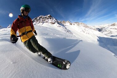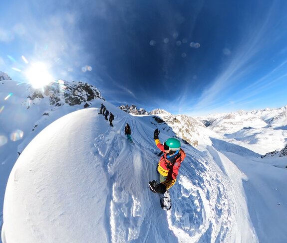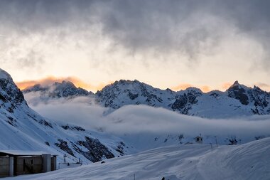 ... von Minute zu Minute, wenn wir nach der Auffahrt mit der Vermuntbahn in den Tunnelbus in Richtung Silvretta-Bielerhöhe steigen. Alleine die Anfahrt ist ein jedes Mal aufs Neue ein Abenteuer. Schon bald fällt der Blick aus dem Tunnel auf die schneebedeckte Bergwelt der Silvretta-Bielerhöhe. Dann ist klar: Das wird ein gutes Wochenende! Direkt vor dem Berggasthof Piz Buin am Silvrettasee werden wir in die Traumlandschaft auf über 2.000 Meter Höhe entlassen und die neuen Gäste staunen nicht schlecht, welchen Komfort der Berggasthof bereithält. Bevor Sauna und Fünf-Gänge Menu warten, kann man wahlweise noch mit dem eigenen Board Snow- oder Splitboarden oder einfach um den Silvrettasee wandern. Neben grandiosen Ausblicken erwartet einen auch ein Tunnel mit Licht- und Sounddesign sowie weitere interessante Kunstinstallationen.