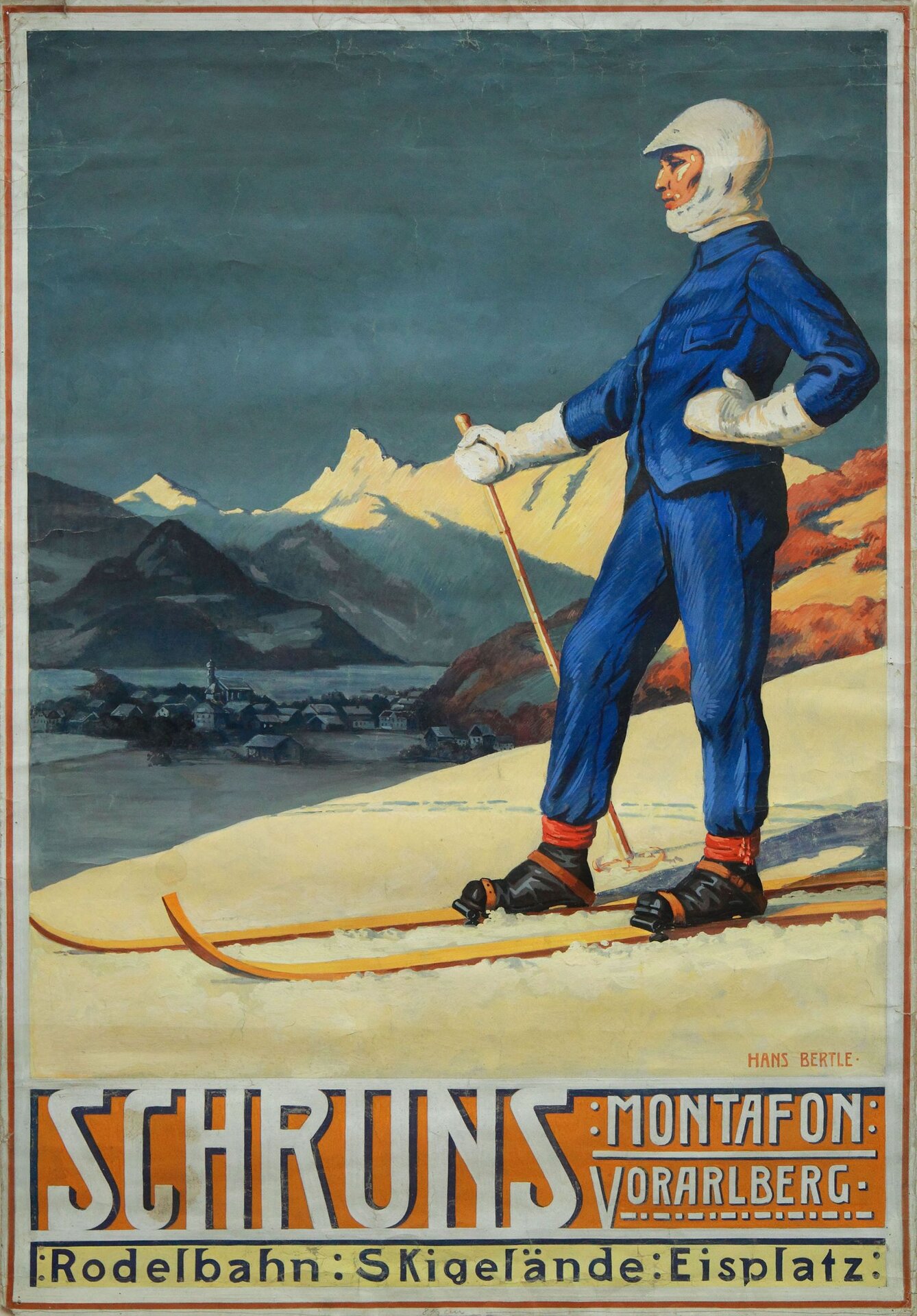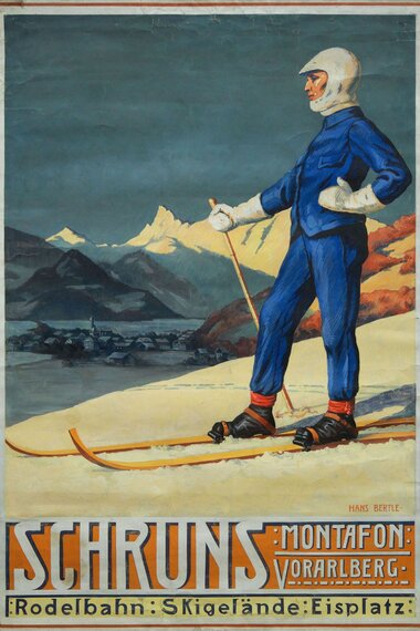 Ein Meilenstein in der touristischen Werbung für die Wintersaison war 1909 die Herausgabe des ersten "Winter-Prospektes" für das Montafon. Dabei entstand mit dem Motiv "Skifahrer", mit dem in erster Linie Schruns beworben wurde, das erste historische Werbeplakat des Tals. Dieses wurde von dem bekannten Montafoner Künstler Hans Bertle gestaltet. Anlass dafür waren die "1. Vorarlberger Schimeisterschaften", die 1910 am Golm veranstaltet wurden.