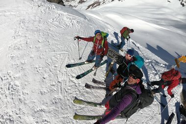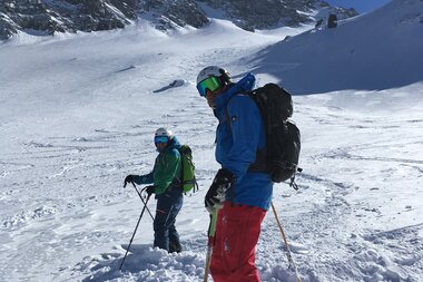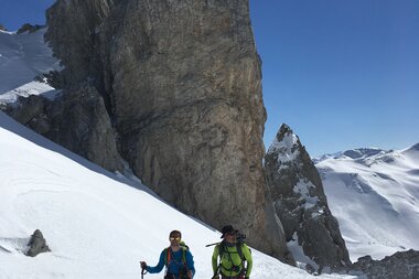 Für die Statistiker unter uns: Das ergibt insgesamt gute 20 Kilometer auf Ski, rund 1.000 Höhenmeter im Aufstieg und 2.300 Höhenmeter Abfahrt.