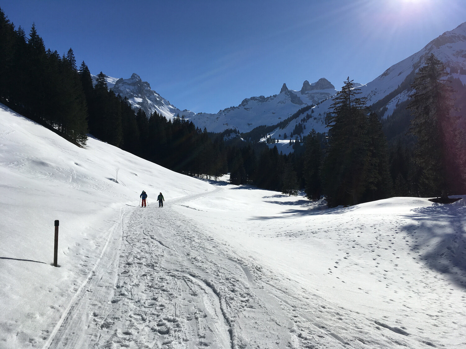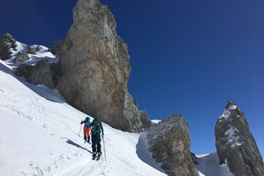 Immer wieder passierten wir dabei Tourengeher im Aufstieg. Die Tourenmöglichkeiten der Region sind schier unerschöpflich...