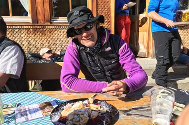 Eine gute Stunde, diverse Kaltgetränke und einen leckeren Kaiserschmarrn später, wartete „nur“ noch die 1.000 Höhenmeter und etwa 8 Kilometer lange Talabfahrt durchs wunderschöne Gauertal und die anschließende Skiroute Nr. 23 nach Tschagguns auf uns. Ein Genuss für die müden Beine.