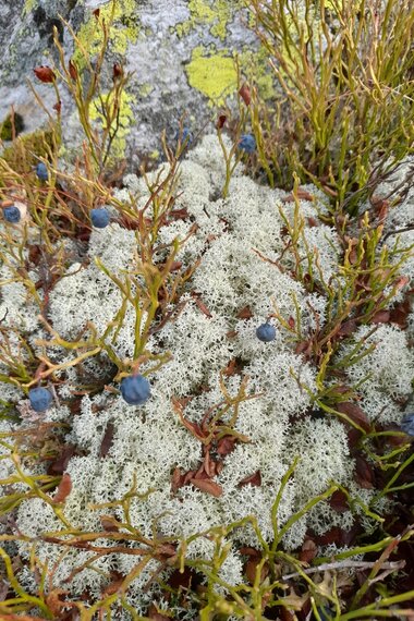 Meine Wanderführerin holt mich von Gipfelträumereien auf den Boden zurück: Die Blicke nach unten offenbaren Natur pur. Imelda zeigt Moose, Flechten und Beeren – der Adventskranz bastelt sich hier von selbst. Plötzlich ändert sich die Szene: Wir kommen vom Wald auf weite, freie Flächen. Eine alpine Moränenlandschaft mit Mooren im Herbstsonnenlicht. Das violette Farbspiel … nur unterbrochen von moosbedeckten Felsbrocken aus Silvretta-Kristallin, Zeugen der Eiszeit-Landschaft zu Sid’s Zeiten. Man taucht ein, in die Farben des Indian Summers im traumhaften Verwall im Montafon. Canada ... can wait.
