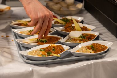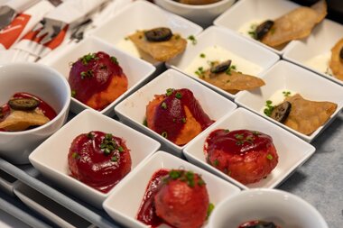 Und gemäß dem Markenkernwert „bäuerlich“ lud Montafon Tourismus zum Abschluss zu kulinarischen Köstlichkeiten aus der Region, die von von Thomas Hilbrand mit seinen Schülerinnen und Schülern der GASCHT – Gastgeberschule für Tourismusberufe in Bludenz zubereitet wurden.