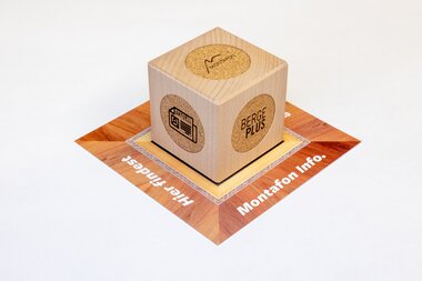 Dieses Jahr ist dies der Montafon Info-Würfel. Die Tischlerei Vergud in St. Gallenkirch hat eigens dafür aus Montafoner Buchenholz einen 7x7x7 cm großen Holzwürfel kreiert. Dieser wurde technisch mit NFC-Chips der Firma deroberhammer bestückt und mit sechs wichtigen Montafoner Themen bespielt. Der Gastgeber hat nun die Möglichkeit diesen Würfel in seiner Unterkunft aufzustellen.