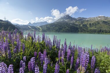 Der älteste Stausee des Montafon in dieser Bergidylle des Verwall ist nicht etwa durch Menschenhand, sondern durch die natürlichen Gegebenheiten des so genannten Schwingrasens entstanden. Dabei handelt es sich um eine Pflanzendecke, die vom Ufer her auf dem Wasser wächst und dadurch langsam zur Verlandung führt. Auf den ersten Blick ist der Schwingrasen nicht vom festen Untergrund zu unterscheiden, bei Belastung gibt der Grund jedoch nach und beginnt zu schwingen.