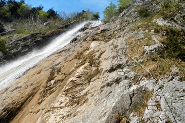 Entlang der gut erhaltenen Straße zum einstigen Abbaugebiet stößt Du immer wieder auf Überreste des ehemaligen Bergbaus. Auf einem nahegelegenen Felssporn etwa zeugen Stützen der ehemaligen Materialseilbahn, die den Gips direkt ins Tal beförderte, von vergangenen Tagen. Und auch das verwachsene Tragseil der Bahn, welches nach Stilllegung im Wald zurückgelassen wurde, ist hier und da am Waldboden erkennbar. Selbst im Ort, wo der Gips zum Teil direkt verarbeitet und mithilfe der Montafonerbahn europaweit exportiert wurde, kannst Du noch immer einen gut erhaltenen Mühlstein aus vergangenen Bergbautagen finden.