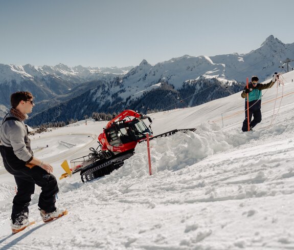 Für den Pistenbau steht ein erfahrenes, professionelles Team bereit, das durch den Skiclub Montafon unterstützt wird, damit dessen Mitglieder wertvolle Praxiserfahrungen sammeln können. Mitte Januar fand ein weiterer Lokalaugenschein mit unserem slowenischen Pistenbauer Ales Špan statt, der uns die finalen Anweisungen gab, um optimal auf den Bau Mitte Februar vorbereitet zu sein.