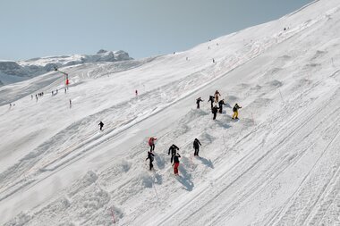 Um dennoch bestmögliche Bedingungen zu schaffen, setzen wir auf Snowfarming und Schneebords, die den Schnee bei Wind gezielt ablagern. So versuchen wir, so viel Naturschnee wie möglich zu nutzen und die Produktion von technischem Schnee auf ein Minimum zu reduzieren.