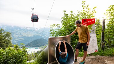 Vater mit Sohn, welche sich gerade am Start einer Rutsche vom Waldrutschenpark-Golm befinden | © Golm Silvretta Lünersee Tourismus GmbH Bregenz, Mathäus Gartner