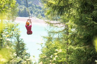 Eine weitere Neuigkeit gibt es darüber hinaus vom Erlebnisberg Golm: Der Flying-Fox-Golm ist zurück. „Wir freuen uns sehr, dass wir die Anlage rechtzeitig zur Hauptferienzeit wieder eröffnen konnten“, so Judith Grass. Der Wiedereröffnung am vergangenen Samstag gingen in den letzten Monaten umfassende Umbauarbeiten voraus. So wurde unter anderem die Talstation modernisiert, um eine verbesserte Infrastruktur für Besucher:innen und Mitarbeitende zu bieten. Darüber hinaus wurde die gesamte Anlage technisch auf den neuesten Stand gebracht – für ein reibungsloses und eindrucksvolles Flugerlebnis.